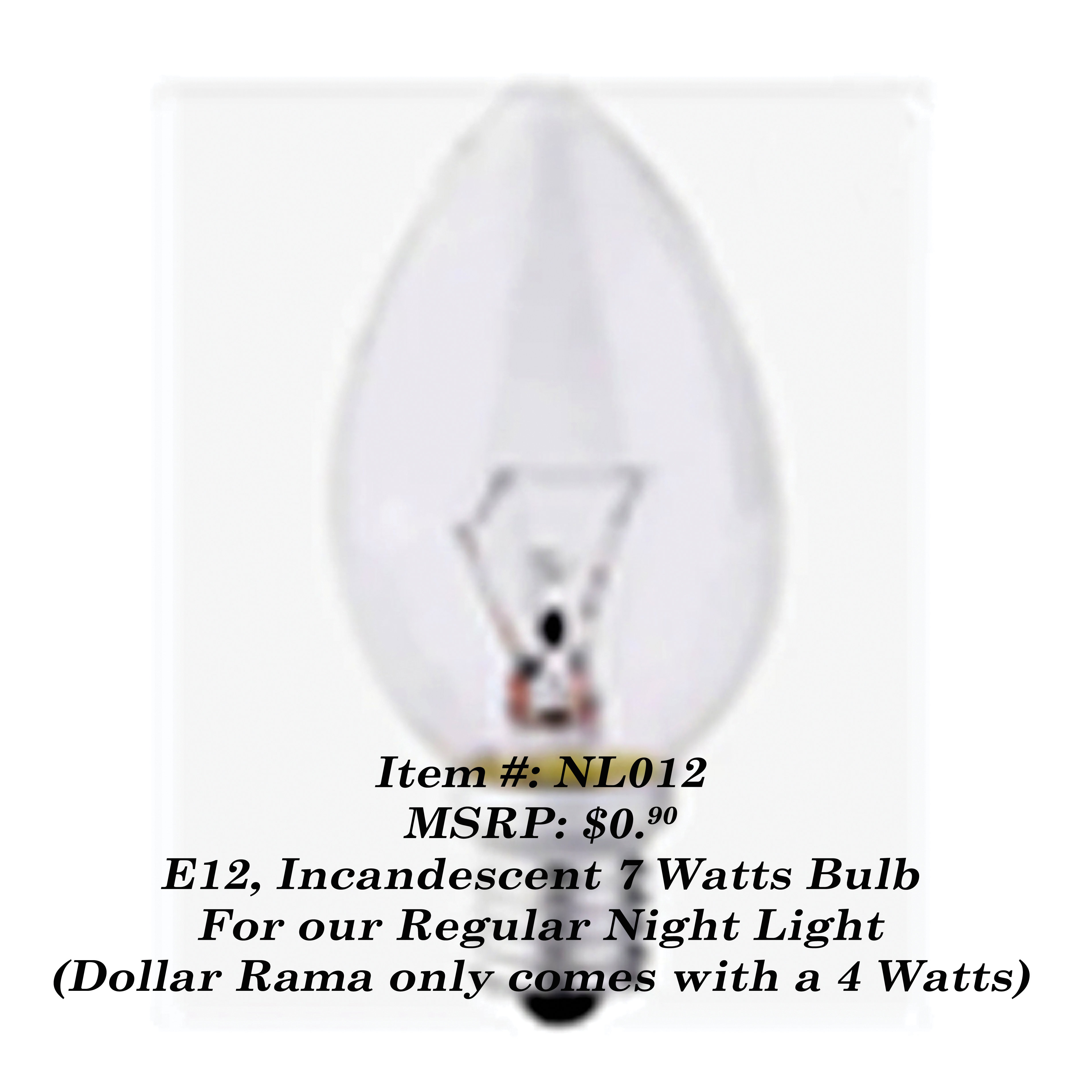NL012: 7W Night Light Bulb; M/O: 50; Case: 50